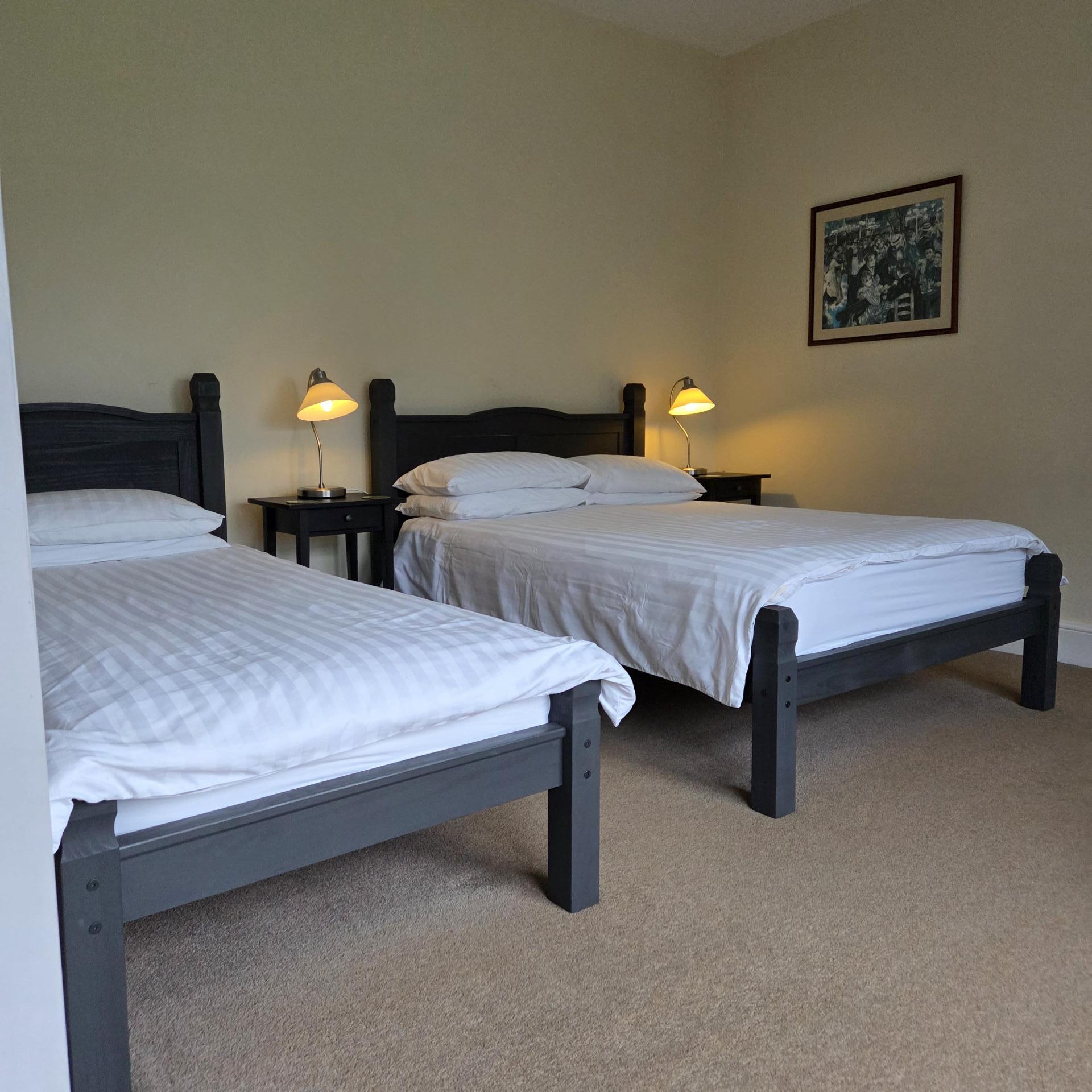 Upstairs, the rooms Moulton &Apsley, both have one double bed, one single bed and an additional fold down single bed can be added.These rooms have ensuite shower rooms.