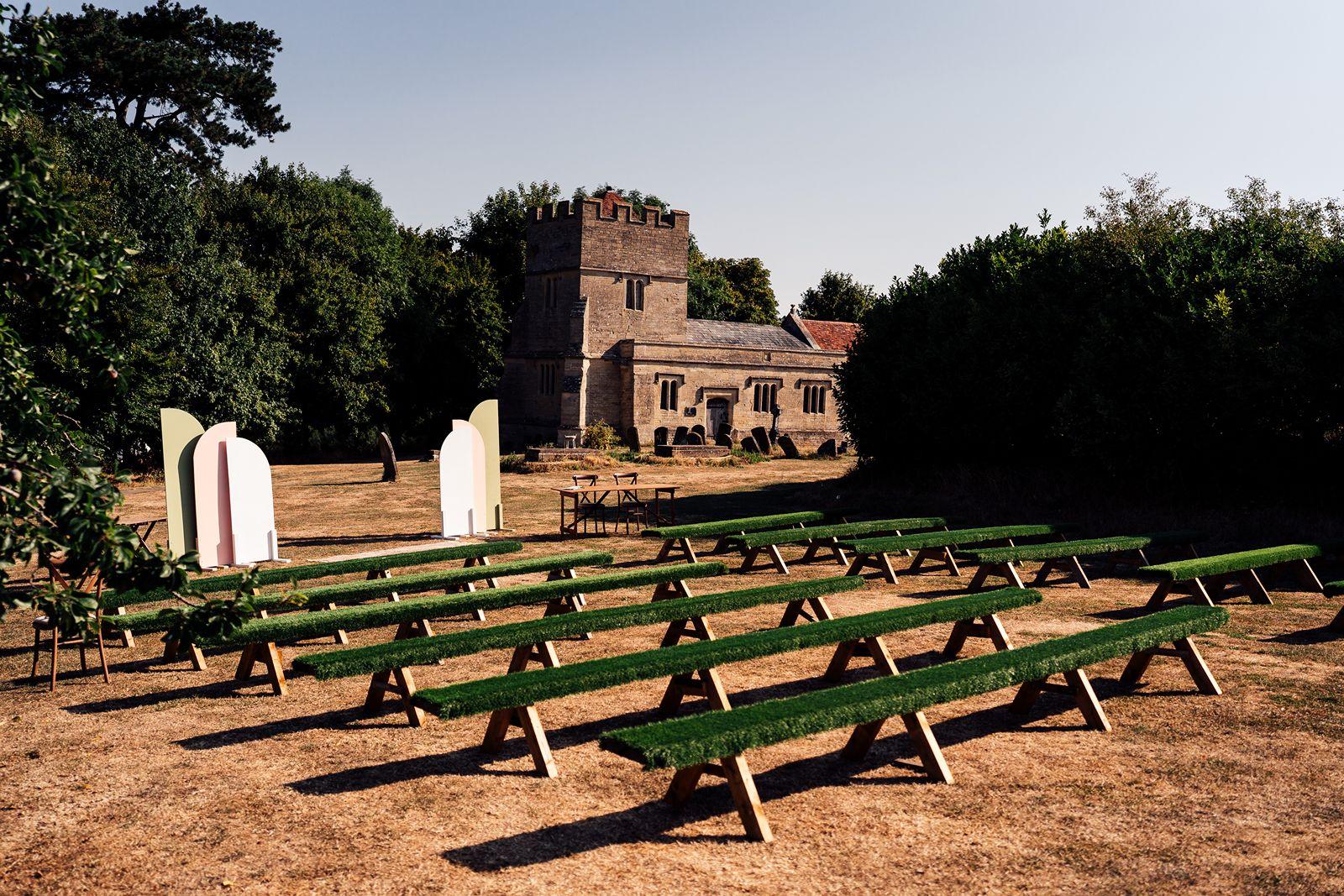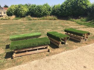 Grass seats We now have 12 benches which seat up to 8 people and there are 27 pallet seats. So in total we can seat up to 150 guests using these for a ceremony.